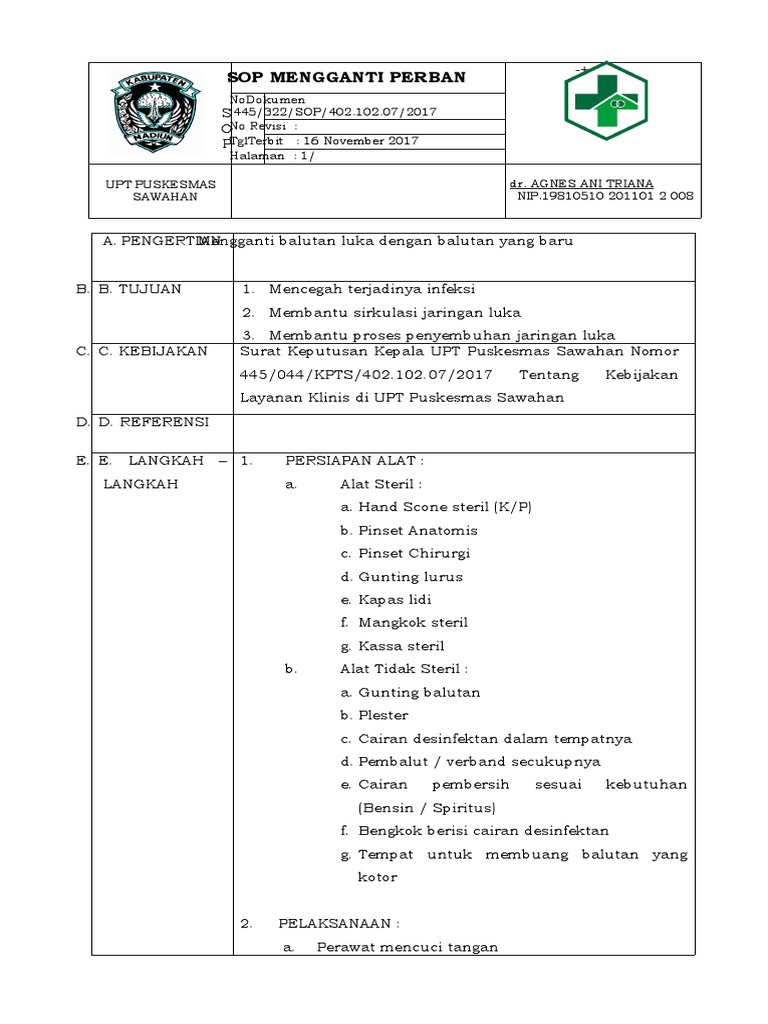 Posted on september 21, 2012 by dayatvetra. Identitas yang masih berlaku (ktp/sim/kta/kitas/paspor/kartu pelajar/kartu mahasiswa ). Siapkan alat yang diperlukan dan dekatkan kepada pasien3. Kami senang jika bisa melayani anda :) #alkes #alatkesehatansurabaya #alkesmurah #kursiroda #velbed #tandu #bedpasien #urinbag #peralatanrumahsakit #perlengkapandokter #cervical #lumbar #setrawatluka #rawatluka #renz #gantiperban #verban jual set rawat luka / set ganti perban. Selain itu, adanya standar operasional prosedur juga akan mengurangi terjadinya kesalahan persepsi antara pekerja dan perusahaan sehingga tindakan yang. Cara rawat luka post operasi usus buntu hari rawatan kesekian kali setelah operasi. Upt dinas kesehatan bulukunyi pengertian. Operating hours of all post offices is 8:00 am until 2:30 pm, monday to friday. Sop, cara perawatan luka post operasi. Perawatan luka dan ganti balutan luka post operasiподробнее. Wpisz nazwę miejscowości i znajdź punkty inpost. Sop tindakan gp (ganti perban). Sop (standar operasional prosedur) ganti verban.