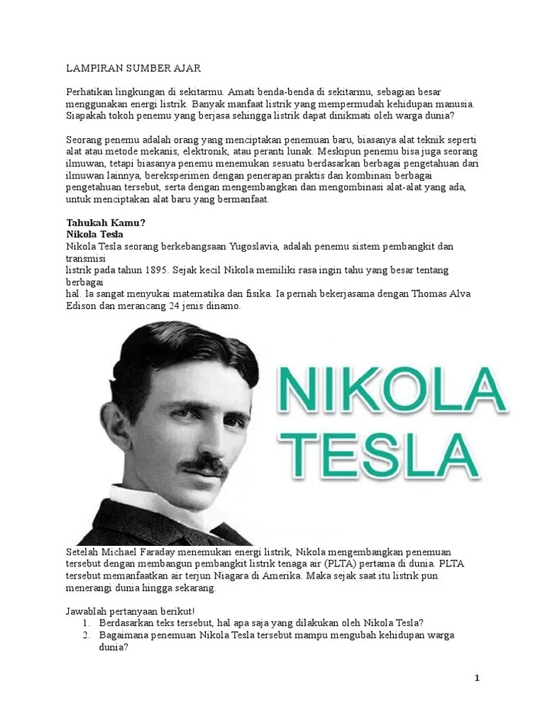 Ia mengemukakan fenomena batu ambar yang . Seorang penemu adalah orang yang menciptakan penemuan baru,. Penemuannya menghadirkan kekuatan modern dan sistem komunikasi massa. Nikola tesla seorang berkebangsaan yugoslavia, adalah penemu sistem pembangkit dantransmisi listrik pada tahun . Siapakah penemu sistem transmisi tersebut?