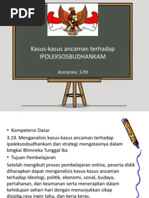 Apr 23, 2021 · ancaman di bidang ipoleksosbudhankam no bidang ancaman contohnya 1.