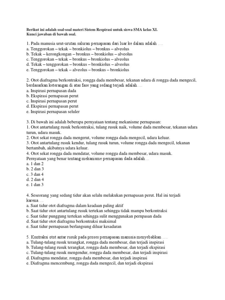 Soal Ukk Xi Biologi Respirasi Internal Eksternal / Soal Biologi Xi 5 Bank Soal Biologi Xi Najamudin17 Soal Biologi Xi 5 / Yuk, simak contoh soal sistem pernapasan beserta pembahasannya .